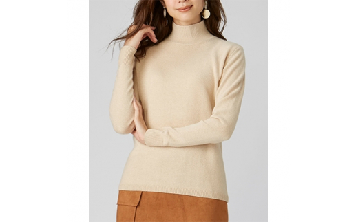 希少ベビーカシミヤ100% 女性ハイネック セーター M ベージュ …
