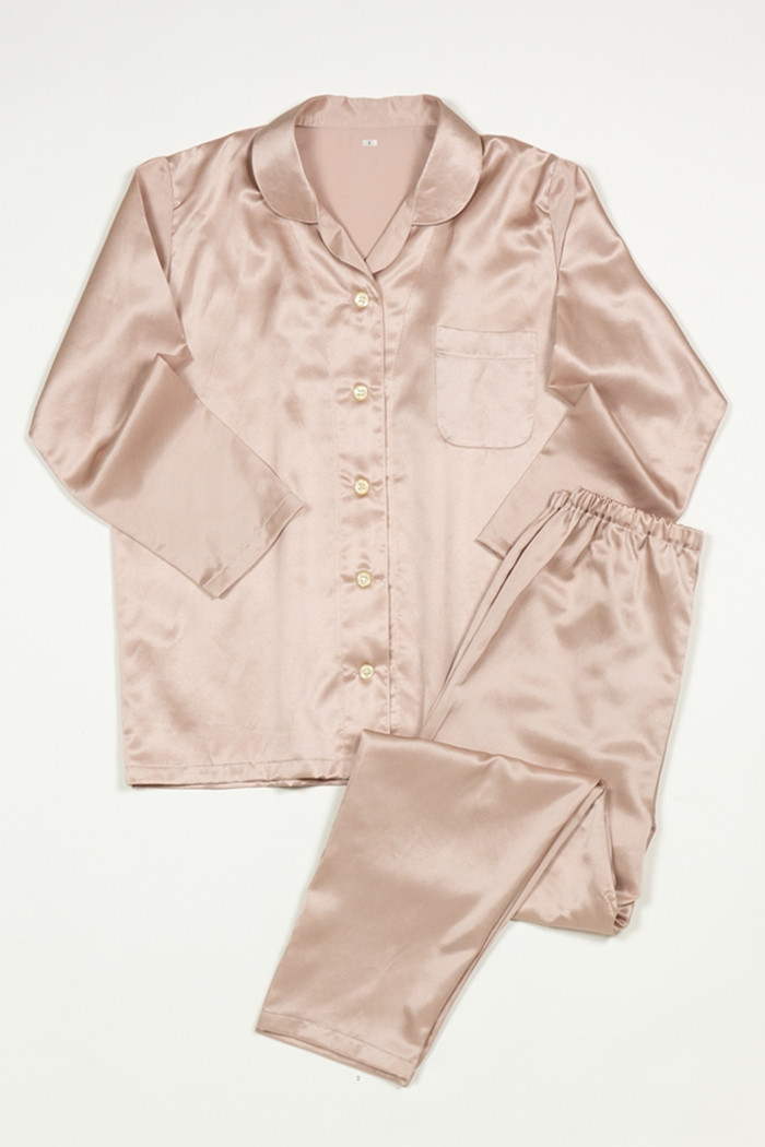 [瀧芳株式会社]シルクナイトウェア (上下セット) グレイッシュピンク-Lサイズ[1300]