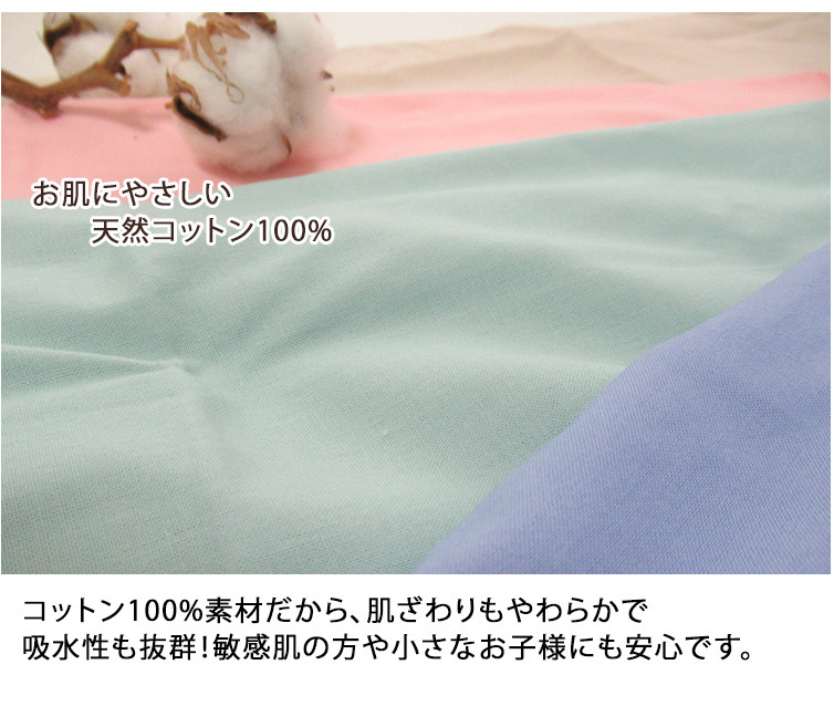 天然コットン100%素材だから肌ざわりもやわらかで吸水性も抜群!