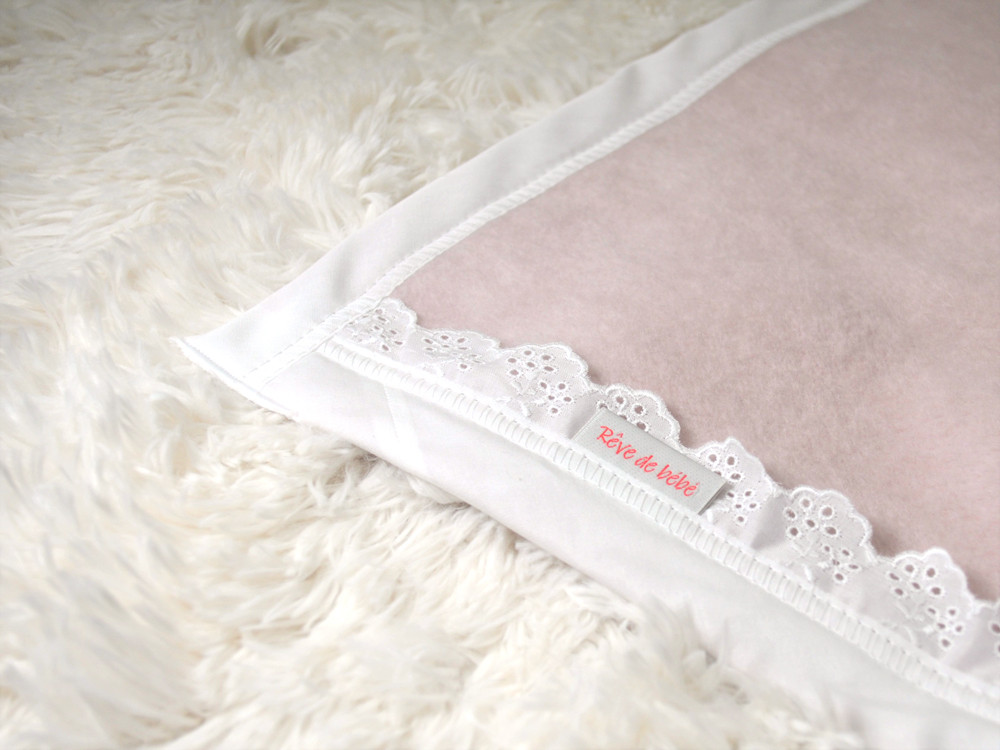 ベビー綿毛布 綿100% レース付刺繍入り ベージュピンク|贈答品…