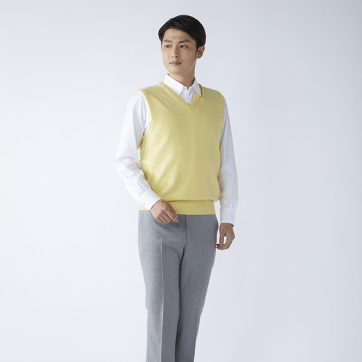 日本製 カシミヤ100% Vベスト イエロー Lサイズ [2635]