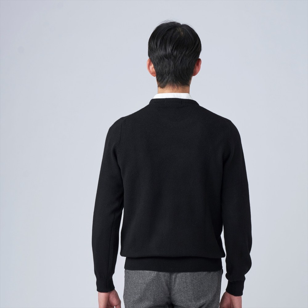 日本製 カシミヤ100% クルーネック ブラック Mサイズ [2646]