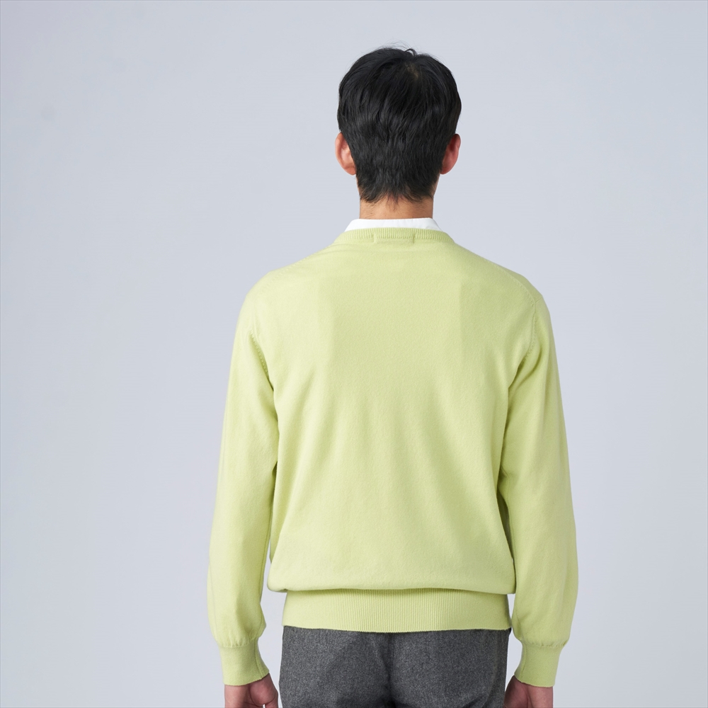 日本製 カシミヤ100% クルーネック ライトグリーン Mサイズ [2650]