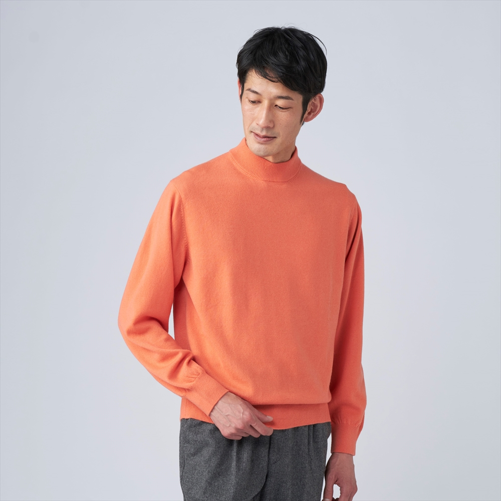 日本製 カシミヤ100% ハイネック オレンジ Lサイズ [2663]