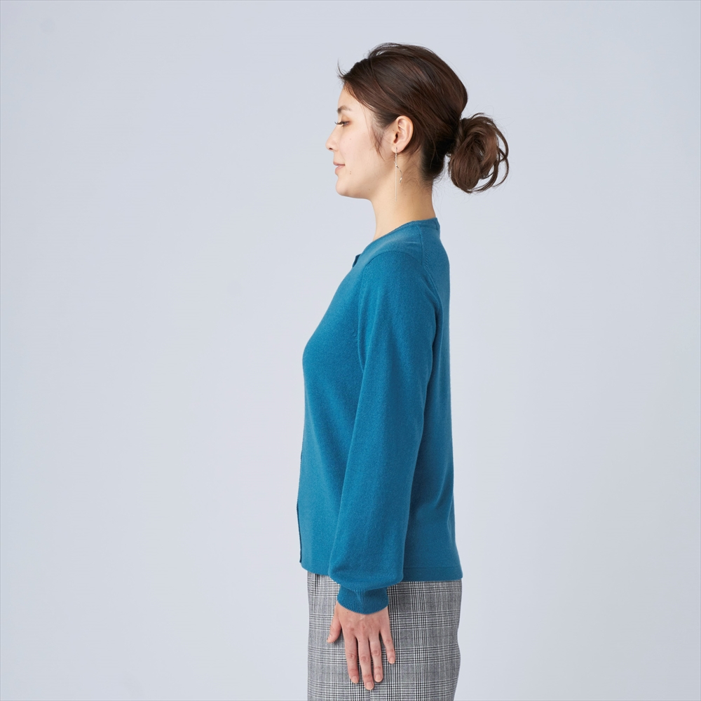日本製 カシミヤ100% レディース クルーカーディガン ブルー L…