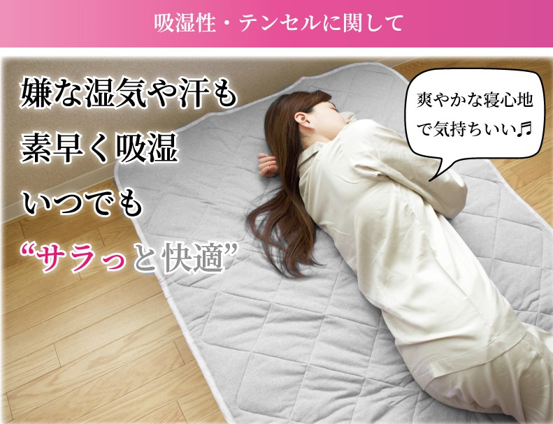 血流改善等が期待されるプラウシオン(R)配合繊維と天然由来のテンセル(TM)を使った健康敷パッドです。