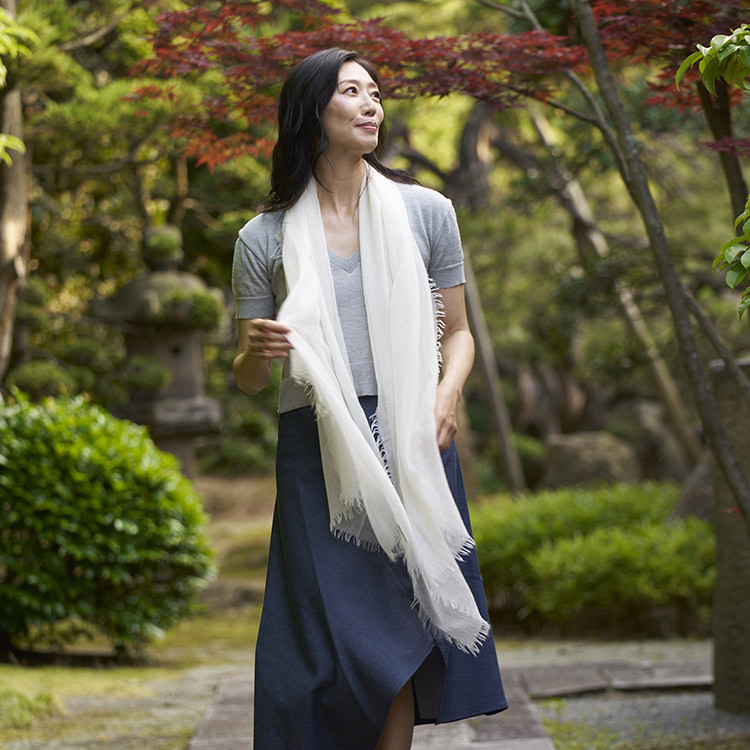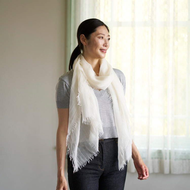 真綿のように柔らかく、空気のように軽い、そして巻いた瞬間「しあわせ」を感じられる、そんなストールです。