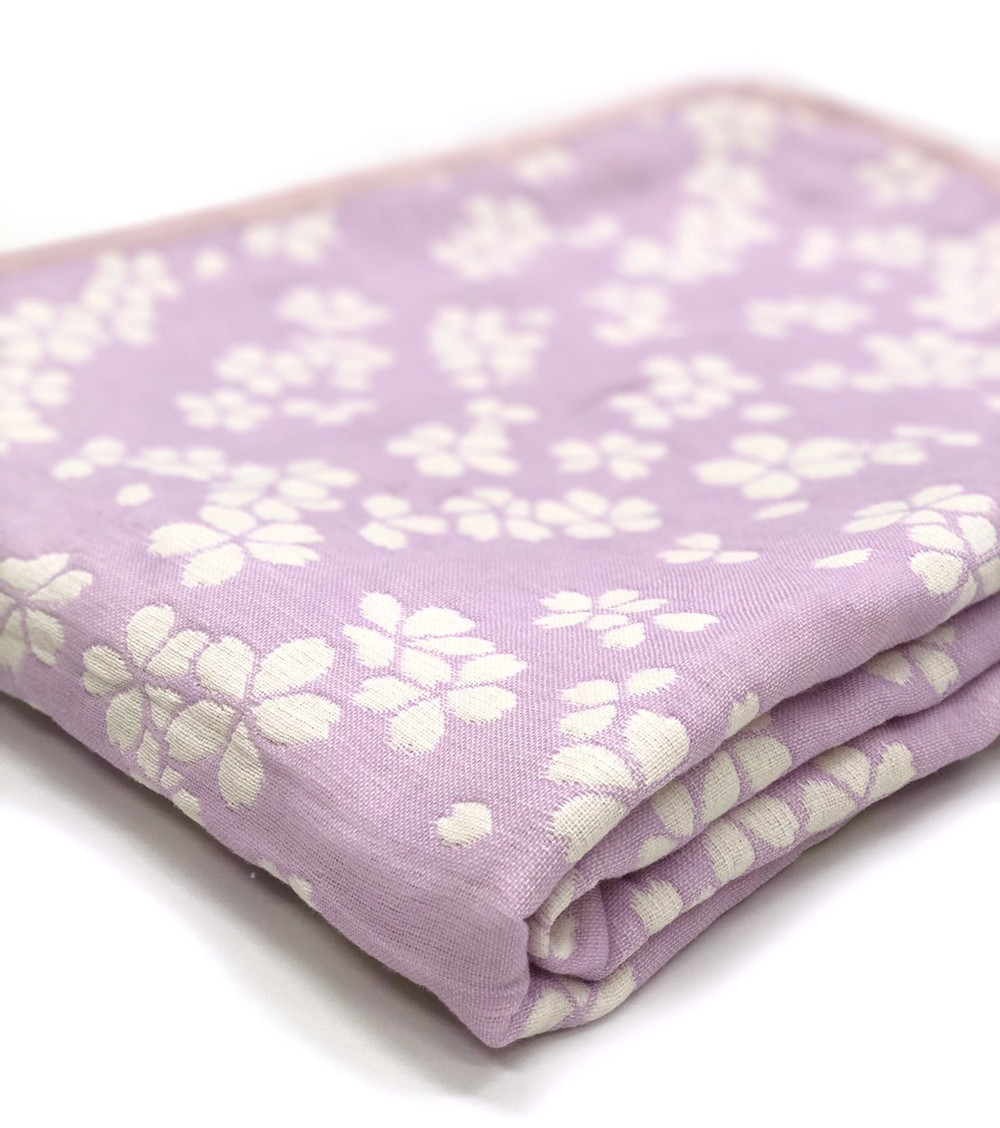 お肌に触れる部分はコットン100% コットンジャカード織 やわらか五重ガーゼケット シングル 約140×190cm パープル色 FNG009 [4599]