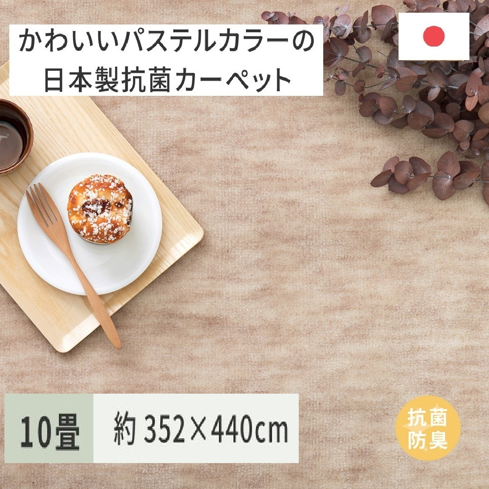 パステルカラーの日本製 抗菌 カーペット 1枚 10帖 ベージュ 約352×440cm 600004190 [3857]