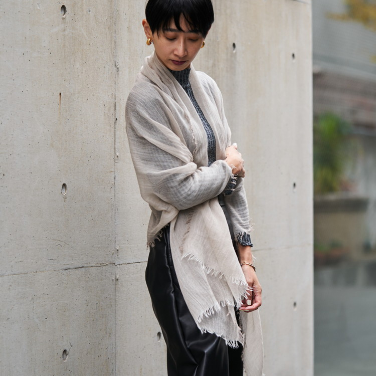 いつも一緒にいてくれる。 でも、普段はその存在を意識することもない。 そばにいてくれて当たり前、存在を忘れるくらい自然に。 わたしたちの考える「ベーシック」をカタチにしました。 花冷えの朝、よく冷えた劇場、カラカラと落ち葉舞う帰り道、北風に肩をすくめる夜。 いつもそばにいて、身体の一部になってくれる。 毎日つかって、大切にお手入れして。 今年も、来年も、再来年も。 ずっと一緒に四季を感じたい、そんな「ベーシック」が完成しました。 《日常のお手入れ》 ご家庭で水洗い(手洗い)もしていただけます。 湿気の多い時期は、巻いていただくと首回りの湿気を吸ってくれるので、サラッと心地よいです。 多少汗ばんだりしても、手洗いしていただけば常に清潔にお使いいただけます。 《無料修理&無料メンテナンスについて》 この商品は、引っかけキズなど無料で何度でもお修理させていただきます。 また、特にキズがない場合でも、一年に一度くらいを目安に、水洗い・毛玉除去・アイロン掛けなどのメンテナンスを無料で承ります。 【細川毛織株式会社】