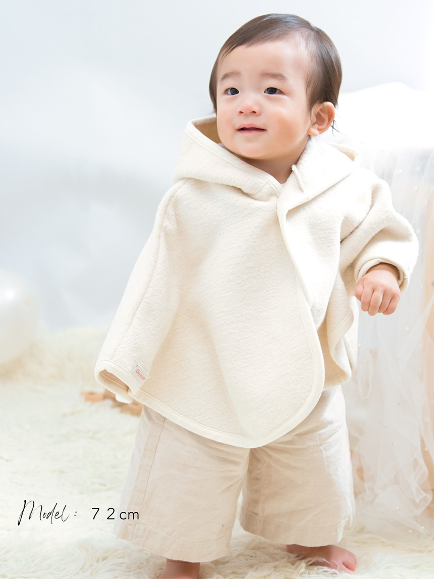 毛布の町 泉大津で生まれたオーガニックポンチョ。 お子様が直接触れる毛羽部分には、GOTS(オーガニックテキスタイル世界基準)オーガニック綿を使用しています。 3年間以上農薬や枯葉剤を使用せず、地球の環境を守る農法で収穫したオーガニックコットンを、製造工程においても無染色・無晒で仕上げた製品です。 天然繊維の綿100%ですので、化学繊維の製品に比べてお子様への刺激が少ないです。 静電気も起こりにくく、吸湿性にも優れています。 良く動くお子様に、上着の袖を通すのが大変なことも… お子様に掛けてから袖の下のホックを留められるので、スムーズに着せられます。 寒い冬や肌寒い秋に毛布ポンチョで暖かく、サッと羽織ることもでき、バタバタするお出かけ時間にも便利です。 全ての製造工程を国内で行っています。 【注意事項/その他】 ※家庭で洗濯する場合は手洗いをおすすめします。(洗濯機をご使用の場合は、たっぷりの水で洗濯ネットに入れてドライモードコース等でお洗濯ください) ※生地は綿100%ですので、お洗濯により多少の縮み等が発生する場合がございます。 ※洗濯により、徐々に色あせします。 ※化学薬品による漂白をしていないので、コットンの葉や殻などが残っています。素材の特性によるもので使用するうちになくなります。 ※簡易包装でのお届けとなります。 ※画像はイメージです。モニターによって実物の色と異なって見えることがございます。 【長尾繊維工業株式会社】