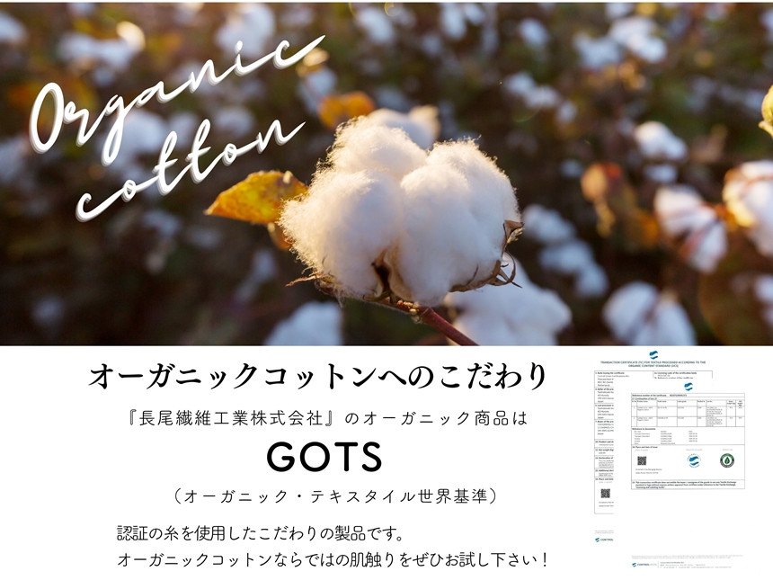お子様が直接触れる毛羽部分には、GOTS(オーガニックテキスタイル世界基準)オーガニック綿を使用しています。