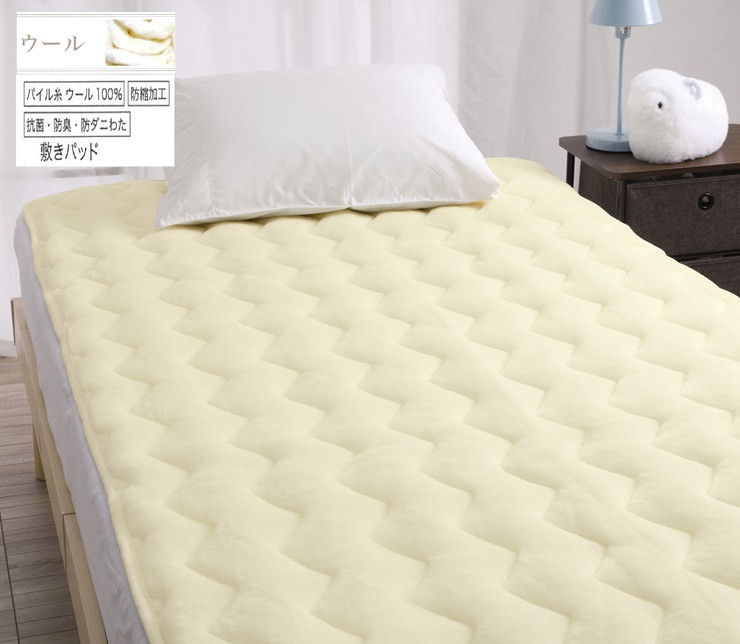 ご家庭で洗える ロマンス天然素材シリーズ 敷きパッド 表のパイル ウール100%毛足16mm 肌に触れるパイル糸部分はオーストラリア産の上質なメリノウール100% 毛足が長くボリュームのある敷きパッドです。 防縮ウール使用でご家庭で洗濯できます。 ウールはしなやかで高い吸放湿性があります。 毛足が長く、ソフトでしなやかな肌さわりです。 保湿性と吸湿性に優れ、快適な寝心地です。 当該返礼品は、区域内の工場において、製造加工されたものです。 【注意事項】 ※画像はイメージです。 ※梱包は簡易梱包です。 【大津毛織株式会社】