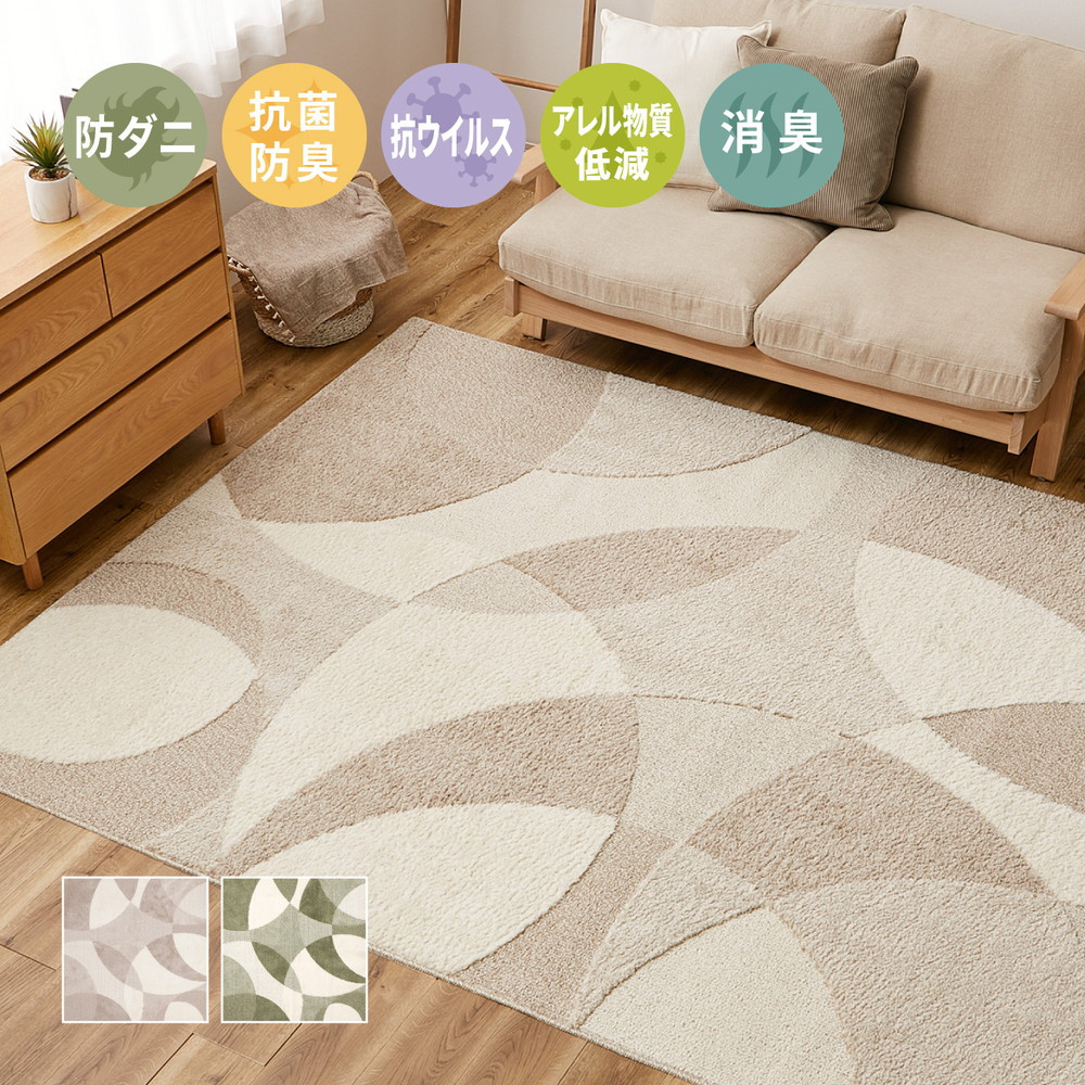 防ダニ・抗菌・防臭などの機能がついた機能的なラグ。 ホットカーペット・床暖房OKです。 5つの機能を兼ねそろえたハイスペックラグです。 防ダニ・抗菌・抗ウイルス・消臭・花粉対策など家族が安心してすごせるよう、嬉しい機能がいっぱいの高機能カーペット。 ウイルスや花粉を吸着して分解する(株)信州セラミックスが開発した「earth plus(TM)アースプラス」を搭載しています。 「earth plus(TM)アースプラス」はセラミックスの複合機能素材です。(酸化チタン、ハイドロキシアバタイト、銀メタル) 食品添加物に認可されている成分で構成され、細菌・ウイルス・アレルゲン・臭い(細菌由来)等のタンパク質を吸着分解する技術です。 「earth plus(TM)アースプラス」は、(株)信州セラミックスの商標です。 【注意事項/その他】 ※置き敷きで使用される場合、カーペット・ラグ自体が滑って転倒する可能性があります。特に木床などの滑りやすい床面で置き敷きする際には、滑り止めシート等を敷いてください。 ※商品の性質上、折りじわが多少発生します。また最初のうちは遊び毛も発生しますが、ある程度使用されると減少します。 ※糸がほつれた場合、ほつれの伝線を防ぐために、すぐにハサミでカットしてください。 ※汚れた際には、汚れが広がらないよう即座にふき取ってください。時間の経過とともに除去しにくくなります。 ※汚れがひどくなった場合、クリーニング店など専門業者にご相談ください。 ※ラベルの止め具を取る際はパイル糸を痛めないようご注意ください。 ※梱包は簡易梱包です。 ※こちらの商品は折りたたんで配送します。一時的な折りジワは、しばらくお使いいただくうち徐々に回復していきます。 ※画像はイメージです。 ■提供事業者:大津毛織株式会社