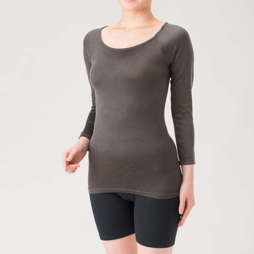 伸縮性に優れたシルクのインナー、なめらかな肌さわりと上質な光沢が魅力のシルク 天然の美容繊維 シルク のびのびインナー 8分袖 フリーサイズ