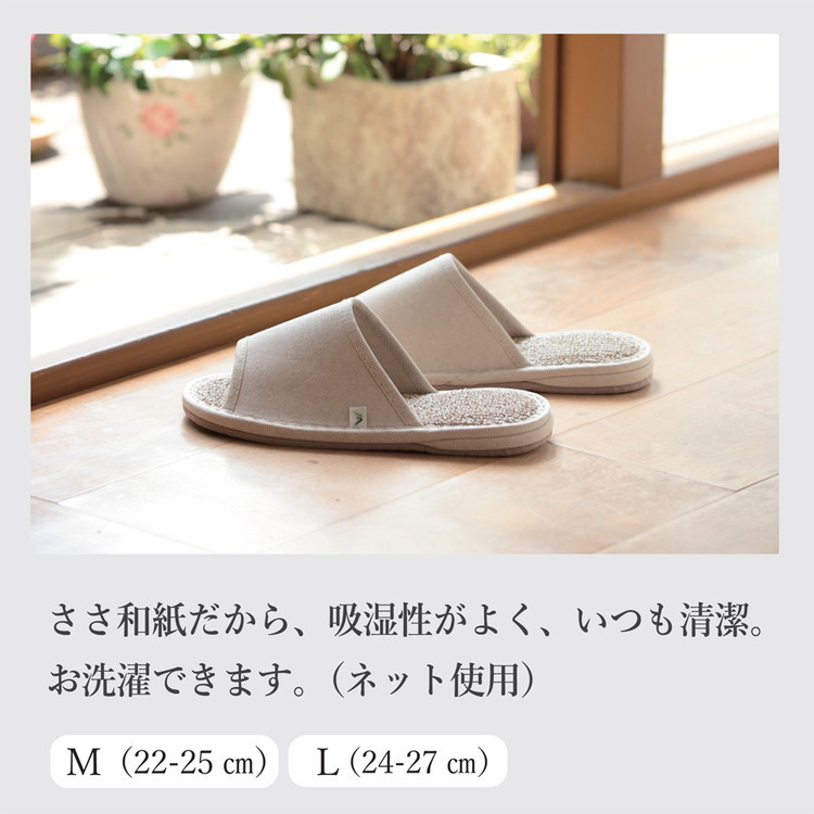 さらさらで快適な履き心地の和紙素材のスリッパです。 SASAWASHI スリッパ ベージュ