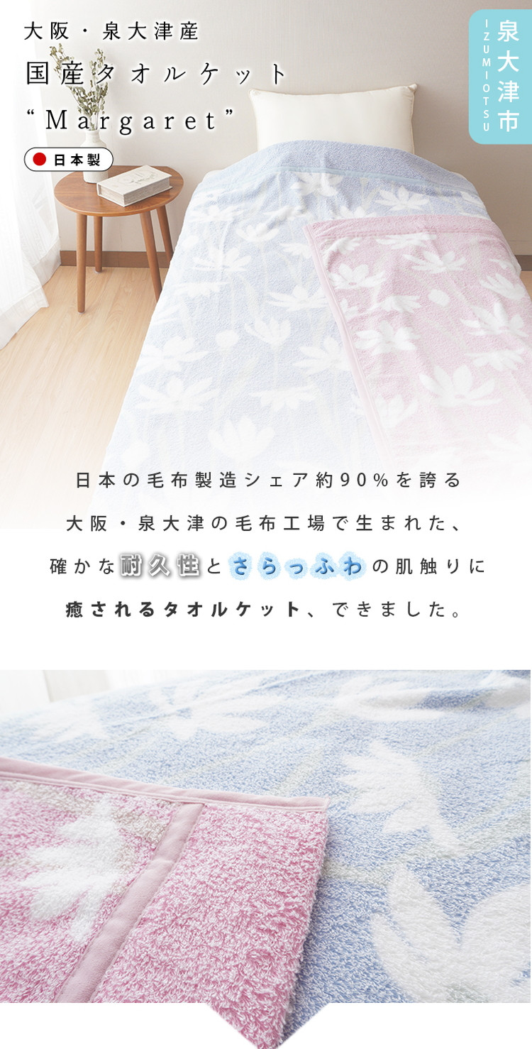長くご家庭に寄り添える泉大津で作られたタオルケット 【Dear Japan】タオルケット「Margaret」 シングル ピンク/ブルー 3400651F