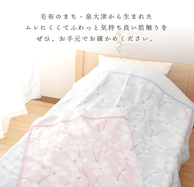 長くご家庭に寄り添える泉大津で作られたタオルケット 【Dear Japan】タオルケット「Flower」 シングル ピンク/ブルー 2400551F