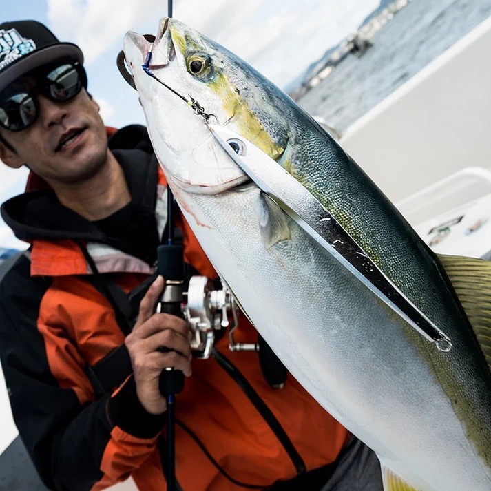 スロージギングによるステイ&ショートスライドフォールで青物等のバイトを誘発。