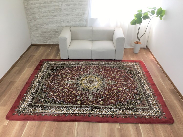 ペルシャ絨毯風の柄は見れば見るほど繊細に品よくデザインされていて和室、洋室、リビングなどどの部屋にも調和し、高級感を感じていただけると思います。