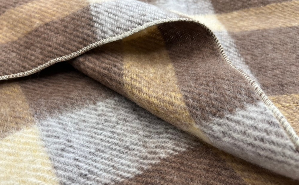 持ち運びに便利なチェック柄の大判ひざ掛け ストールとしてもお使いいただけます かわいいチェック柄の大判サイズひざ掛け ベージュ色 ストールとしてもご使用できます 約70×120cm AH-330 | 軽量 大判 ひざ掛け 70×120cm ストール 2WAY ブランケット チェック柄 ベージュ コンパクト 持ち運び 肩掛け 膝掛け お昼寝 アウトドア 車中泊 キャンプ 泉大津市産 日本製 AH-330