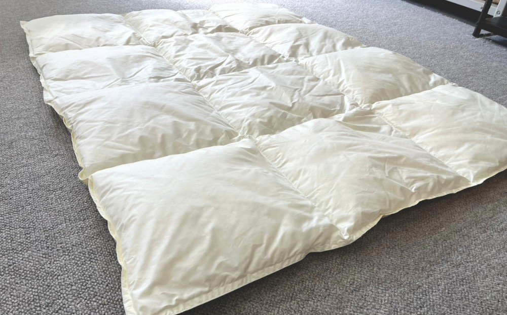 ※羽毛は十分洗浄していますが、臭いが気になる場合は、折りたたんで臭気を押し出して、新しい空気と入れ替えていただいてから、3~4時間程度風通しの良いところで日陰干しをしてからお使いください。