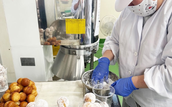 重度の知的障がいがある方々が、焼き上げや袋詰めなど工程に関わって製造しています。