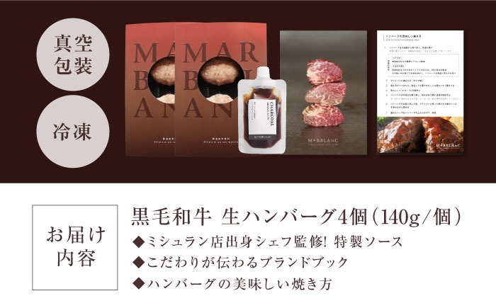 ハンバーグ 黒毛和牛100%使用 高級 ギフト 冷凍 簡単調理 プレゼント 【ミシュラン出身シェフ監修ソース付き】黒毛和牛 生ハンバーグ4個入り 牛肉 冷凍 黒毛和牛100% 大阪府高槻市/株式会社MARBLANC [AOAS028]肉 お肉 牛肉 黒毛和牛 和牛 赤身 霜降り ハンバーグ ハンバーガー おかず 惣菜 簡単調理 冷凍 送料無料 贈答 ギフト プレゼント 人気 定番 特産品 取り寄せ 大阪 高槻 お歳暮 お中元 誕生日 記念日