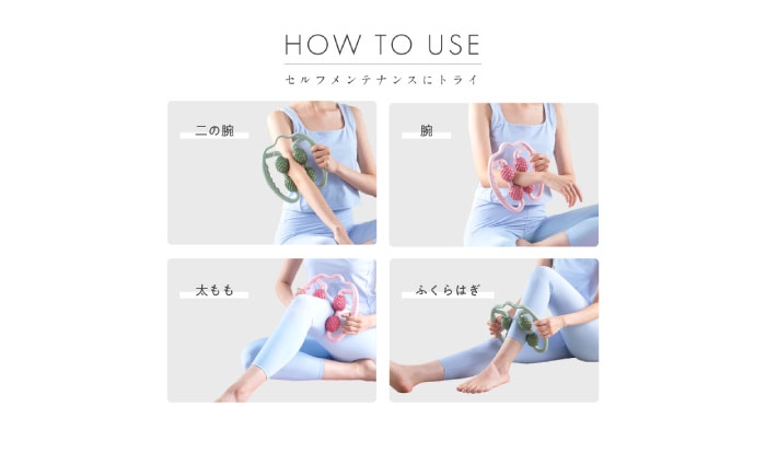 このハンドルローラーで筋肉をほぐして疲れを癒しましょう。