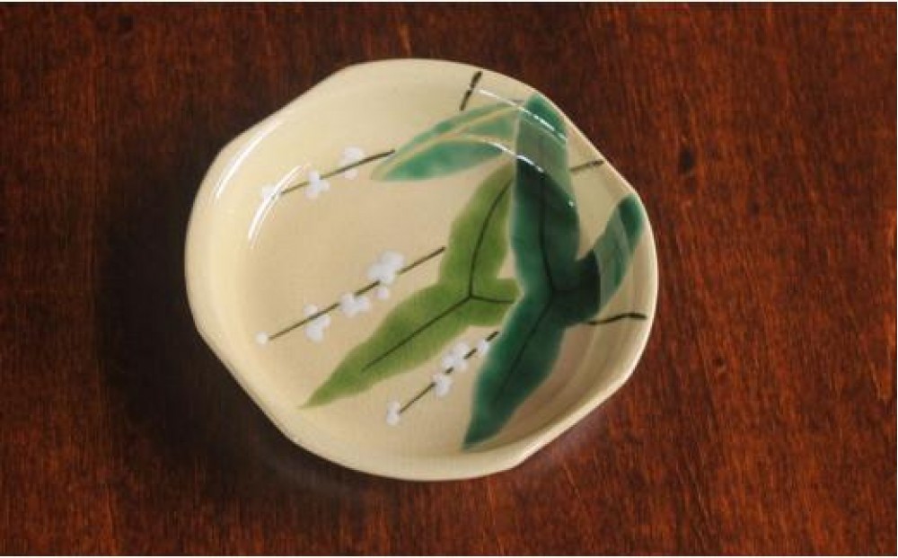 色絵おもだか紋四方小皿5枚【水間焼伏原窯】