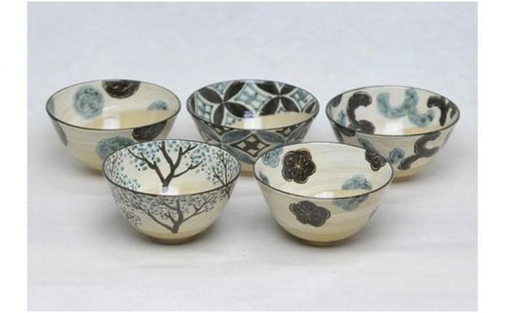 乾山 絵替飯碗 5柄セット【水間焼伏原窯】