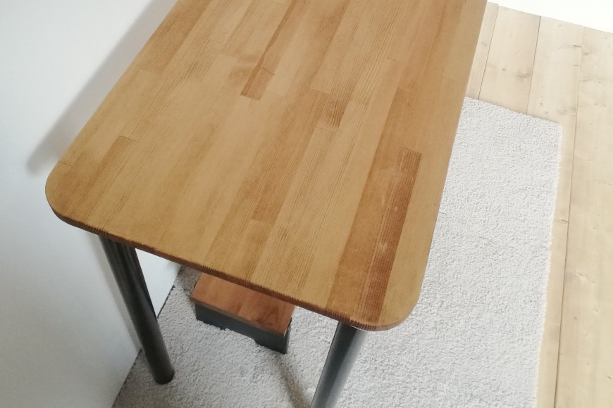きれいに角を丸くした天板(天然木)と鉄角脚を組み合わせた、ワークデスクです。