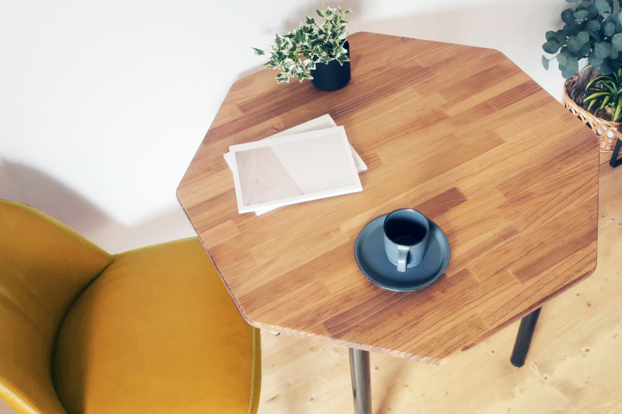 ハチカク型の天然木のダイニングテーブルです。 天然木 ハチカク型 ダイニング テーブル オイル+ウレタン 仕上げ 90cm 工具不要|新星金属製作所 大阪府 守口市 インテリア 机 リビング 脚 パーツ 72cm 木 八角形 [0947]