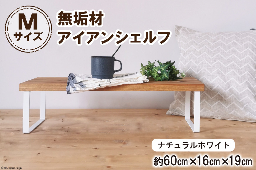自由なレイアウトで使用可能◎ 棚 無垢材とアイアンのシェルフ ナチュラルホワイト M60cm 約横60cm×高16cm×奥行19cm 完成品|新星金属製作所 大阪府 守口市 家具 インテリア シェルフ 植物置き 靴棚 飾り棚 収納 日本製 [0875]