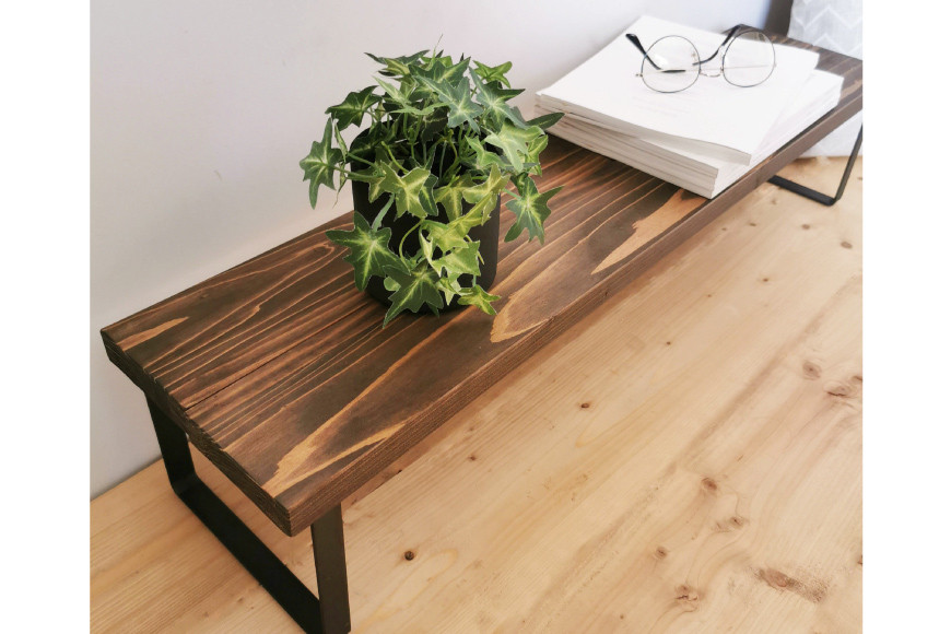 24mm厚の無垢材と頑丈なアイアン脚の組み合わせが、飾るものをとてもおしゃれにします。
