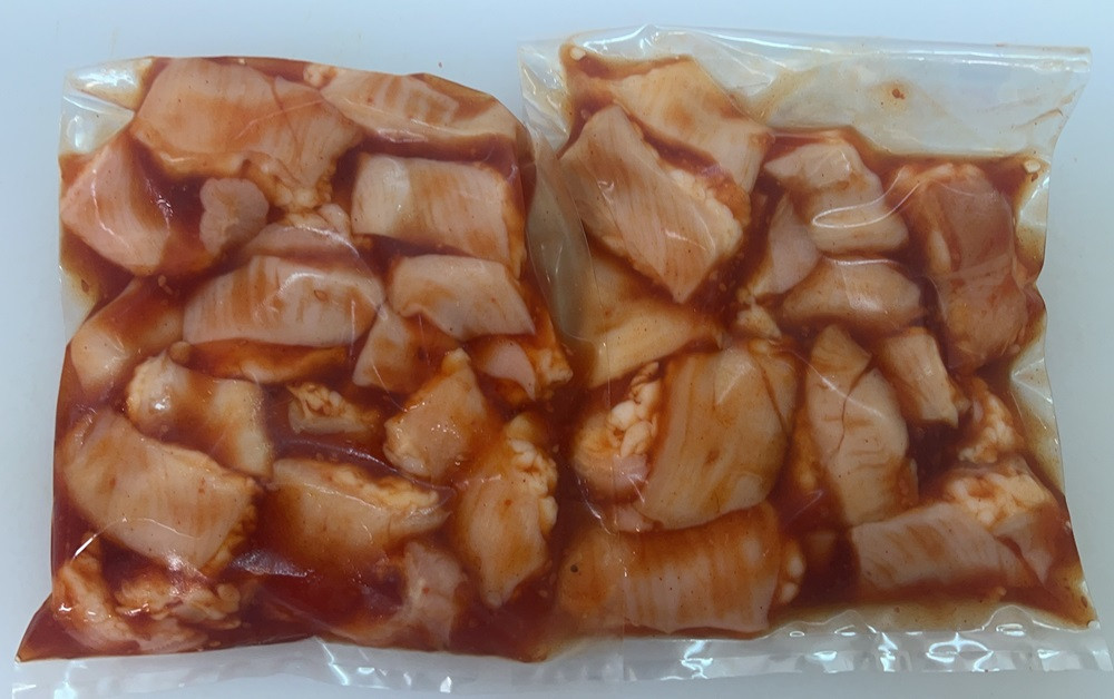 国産内臓肉の下処理、カット、タレ漬けおよびパッキング