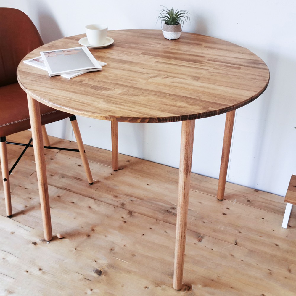 独自配合ウレタン薄膜塗装で木の優しい風合いを実現 [木脚] 天然木のダイニングテーブル (ラウンド) W90×D90×H72cm|オイル・ウレタン仕上げ 組立簡単 工具不要 [2429]