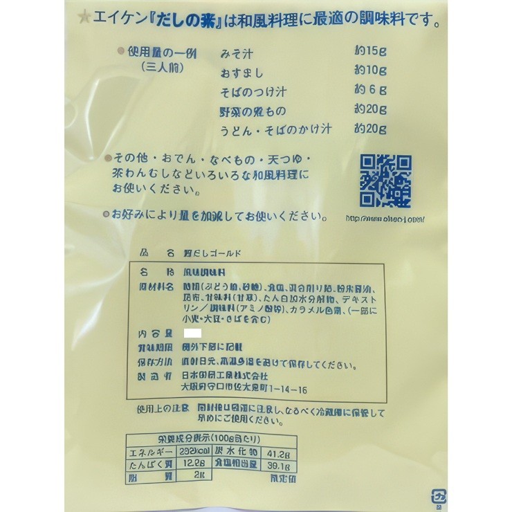| 容量 | ■名称:エイケン かつおだしゴールド ■内容量:500g ■原材料:糖類 (ぶどう糖、砂糖)、食塩、混合削り節、粉末醤油、昆布、甘味料 (甘草)、たん白加水分解物、デキストリン/調味料 (アミノ酸等)、カラメル色素、(一部に小麦・大豆・さばを含む) |