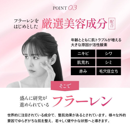 季節やライフスタイルに左右されがちな肌トラブルにトータルで働きかけることができるよう、美容成分をバランスよく配合。