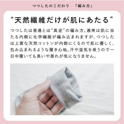 肌側に高級なコットンのみ使用することにより、汗を吸い、蒸れがなく、匂いの軽減はもちろん、寒さを感じやすい方にも最適です。また、ゴムを一切使用せず、全体を包むかのような、履いたことのない履き心地を実現いたしました。サイズがないですので、ギフトにも最適です。つつしたスニーカー丈の締め付け感のお試しセットです。※カラーはお選びいただけません
