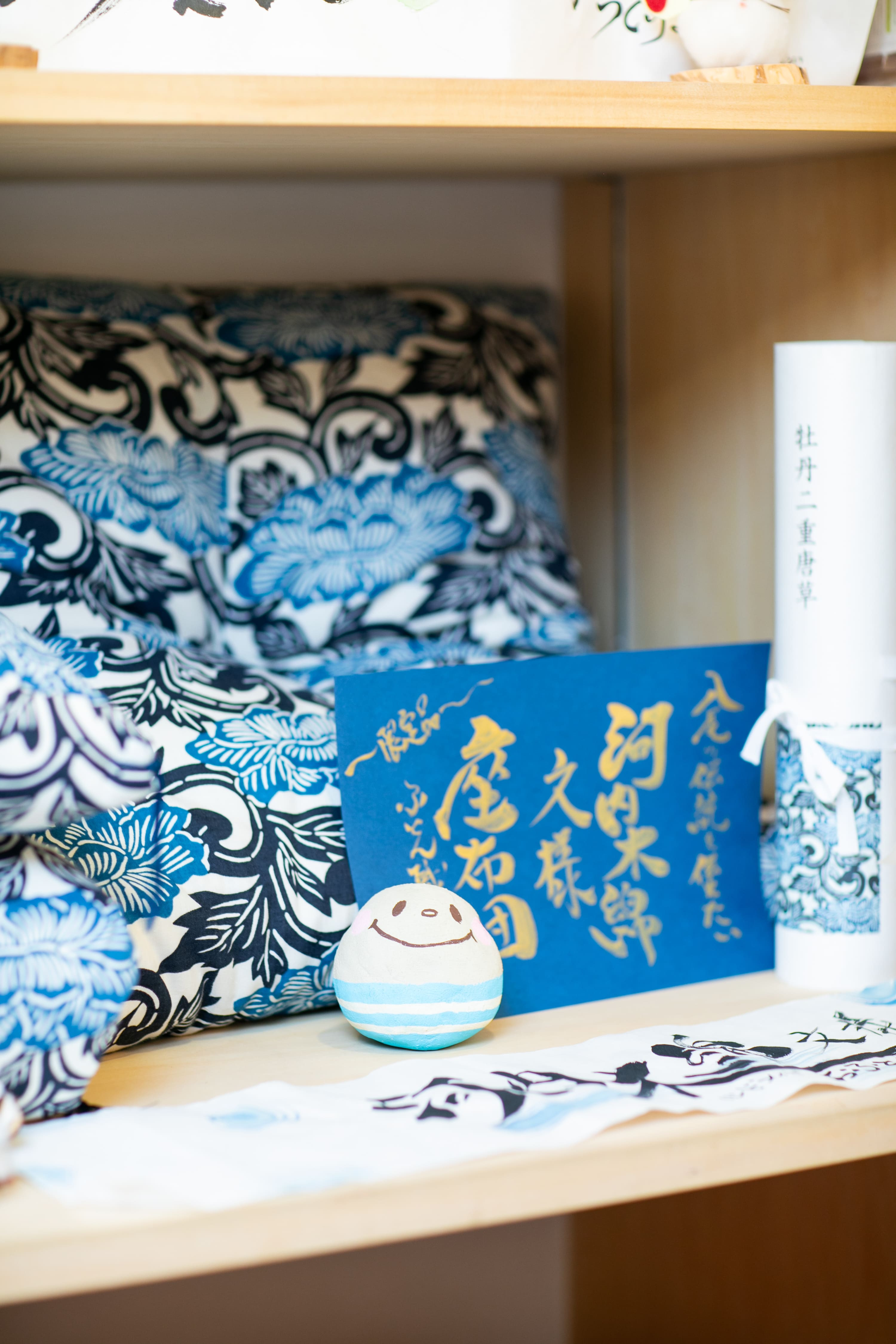 <藍色と水色が上品な河内木綿文様を使用した