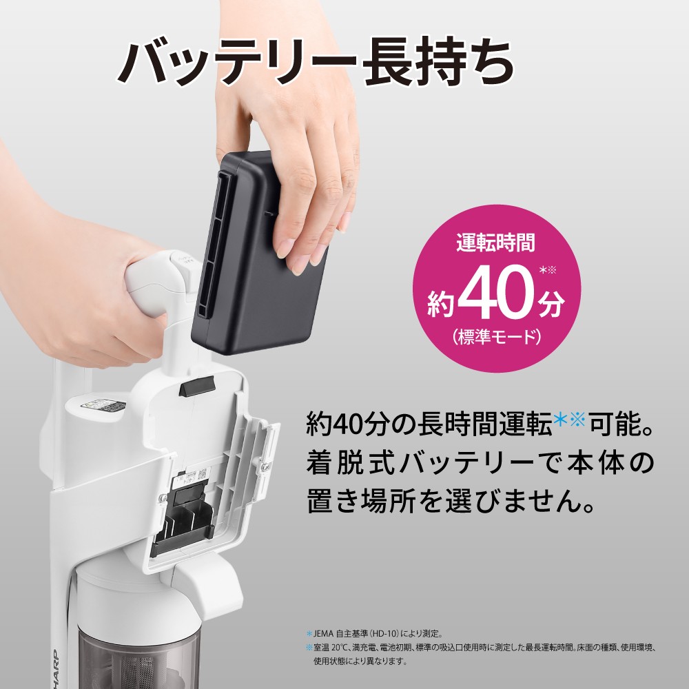 また、運転時に不快に感じる耳障りな音(ピーク音)の抑制により、周りも時間も気にせず、お掃除することができます。