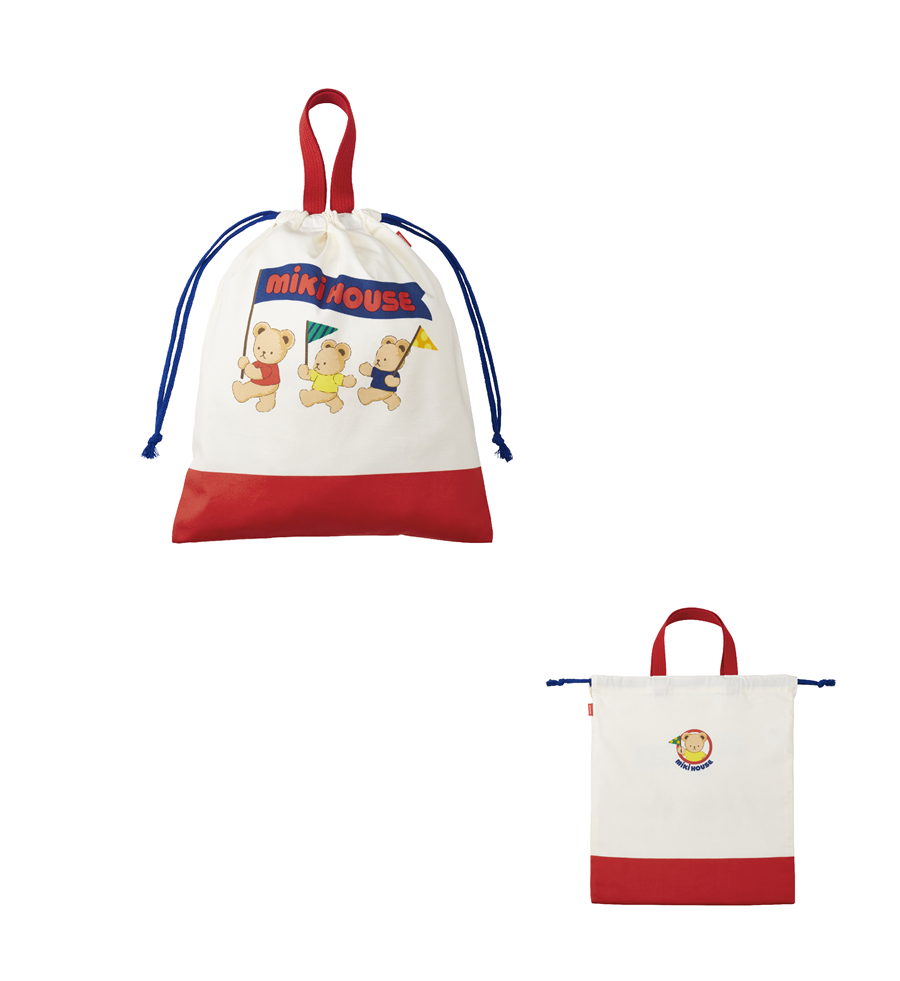 ミキハウスランチグッズのベアシリーズの通園通学セットです。
