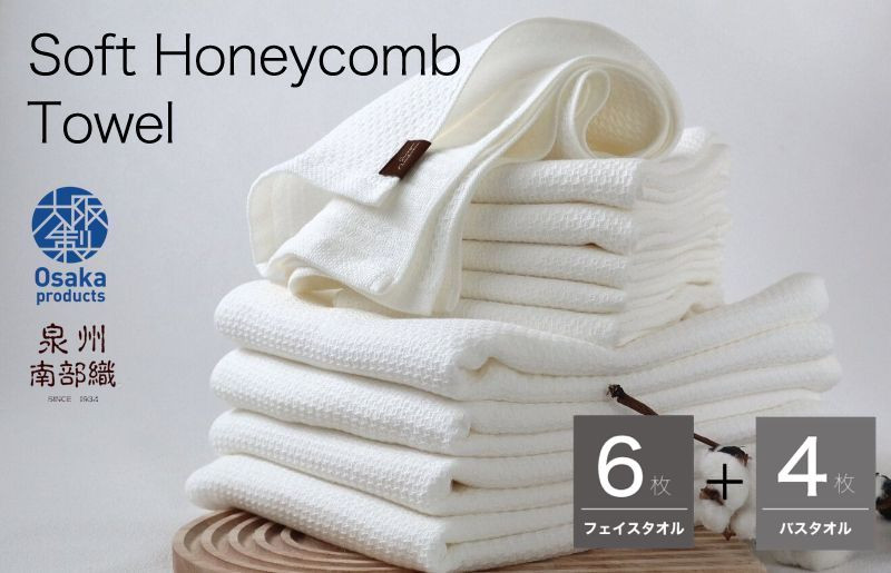 | 容量 | ・泉州南部織ソフトハニカムバスタオル 4枚 約70×130cm、約270g ・泉州南部織ソフトハニカムフェイスタオル 6枚 約34×80cm、約83g 【カラー】オフホワイト ・ソフトハニカム織ハーフハンカチ 1枚(カラーはお選びいただけません)約12×25cm ※画像はイメージです。 |