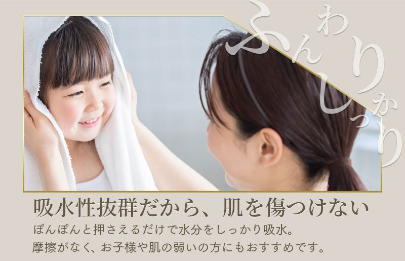 吸水性では通常タオルの約5倍、毛羽落ち率も通常タオルの3分の1を実現しました。お風呂上りの髪の毛を優しく素早く拭き取ってくれます。