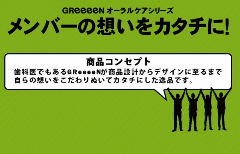 GReeeeNは、歌手として有名でもあり現役の歯科医師です。そのメンバーとの共同開発商品です。