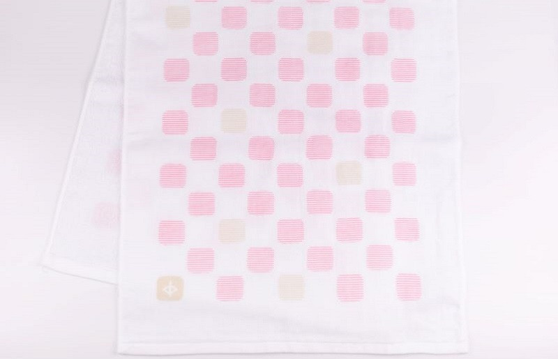 片面ガーゼ、片面パイルのフェイスタオルです。ガーゼ面にプリントを施しています。泉州タオルの特徴である吸水性はもちろん、ガーゼ面・パイル面の2層仕上げで乾きも早いです。原料の綿糸は国内の紡績工場で作られたものを100%使用するJAPAN madeです。小さな町工場で作っています。