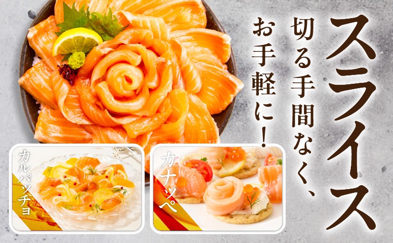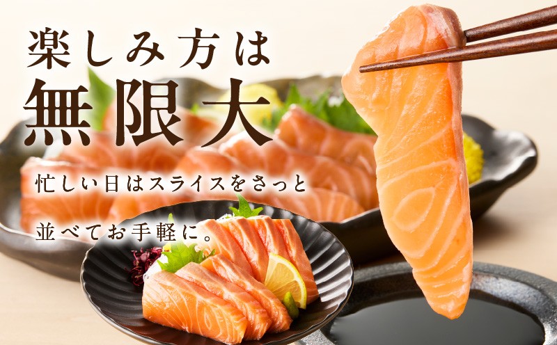 | 容量 | アトランティックサーモン:1.2kg(200g×6) 形状:切り落としスライス ※画像はイメージです。 |