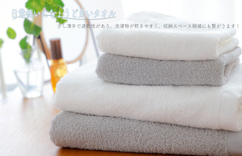 デイリーユースにピッタリなフェイスタオル。薄すぎず、厚すぎないちょうどいい少し薄手タオルなので、速乾性があり、洗濯物が乾きやすい。ボリュームも抑えられているので収納スペース削減にも。