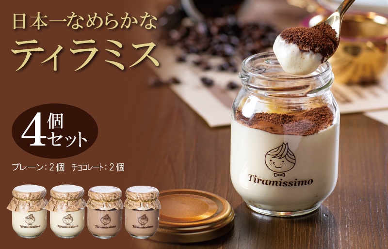 チョイスPayポイントと交換できる品 「唯一無二」なめらかティラミスをお楽しみください! 日本一なめらかティラミス 4個セット(プレーン2個/チョコレート2個)【スイーツ デザート 瓶 御歳暮 お歳暮 ギフト 記念日 プレゼント 贈り物】